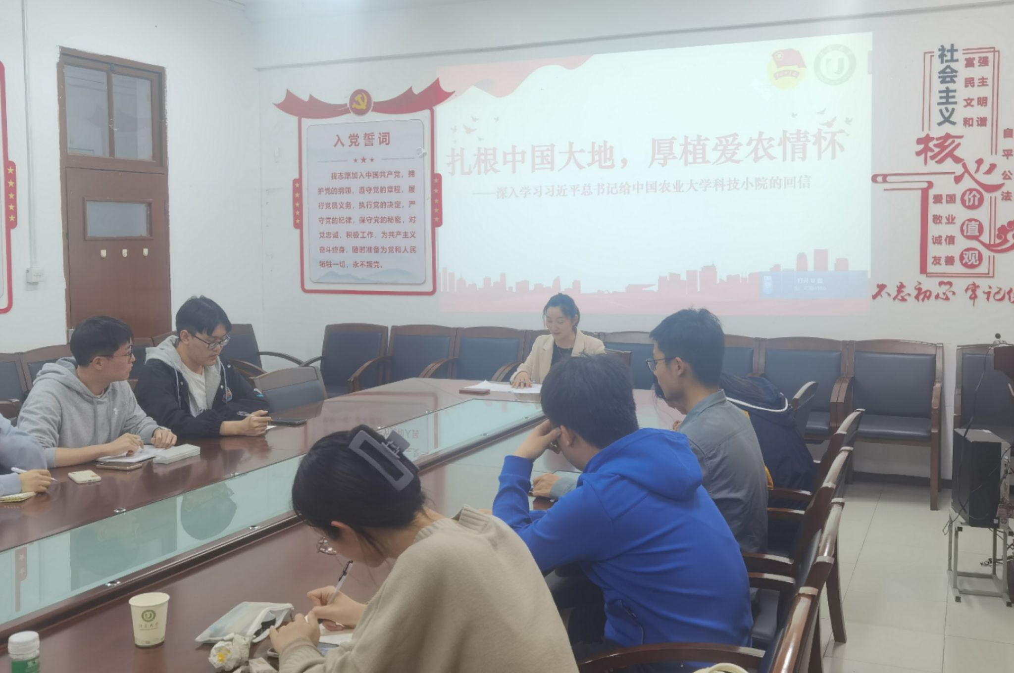 在数科院206会议室组织团学干部学习习近平总书记给中国农业大学科技小院学生的回信精神。学习会由杏色