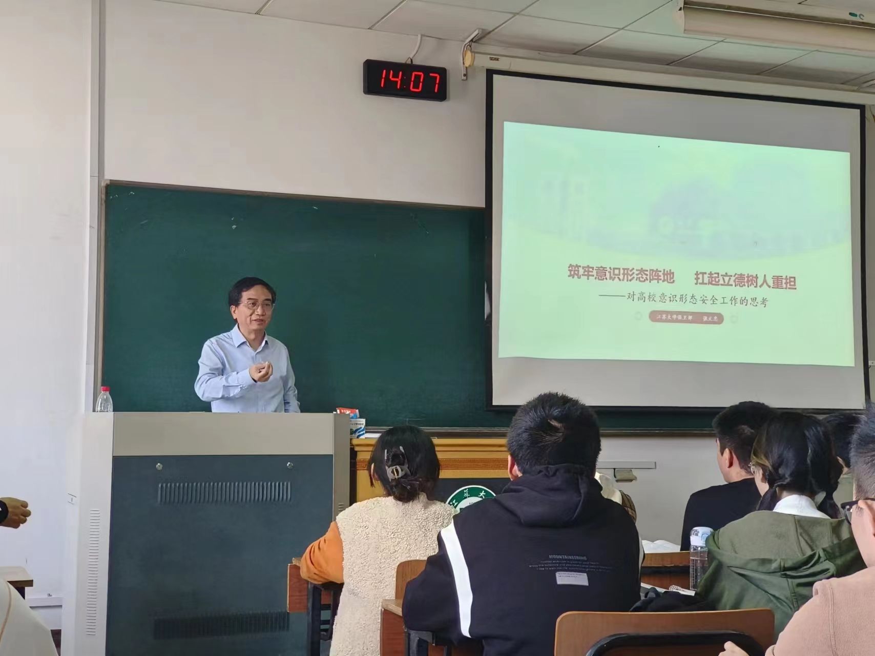 在三江楼602教室举办意识形态专题讲座,讲座邀请杏色