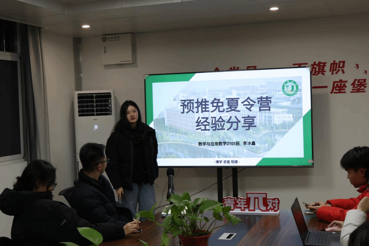 辅导员朱江涛主持,特别邀请了已经免试推研成功的学生党员作为主讲嘉宾,与杏色内有意向参加免试推研的同学共同参与交流。这不仅是知识的传递,更是党性思想的传承,鼓励青年学子在追求学术进步的同时不忘肩负的社会责任和使命。