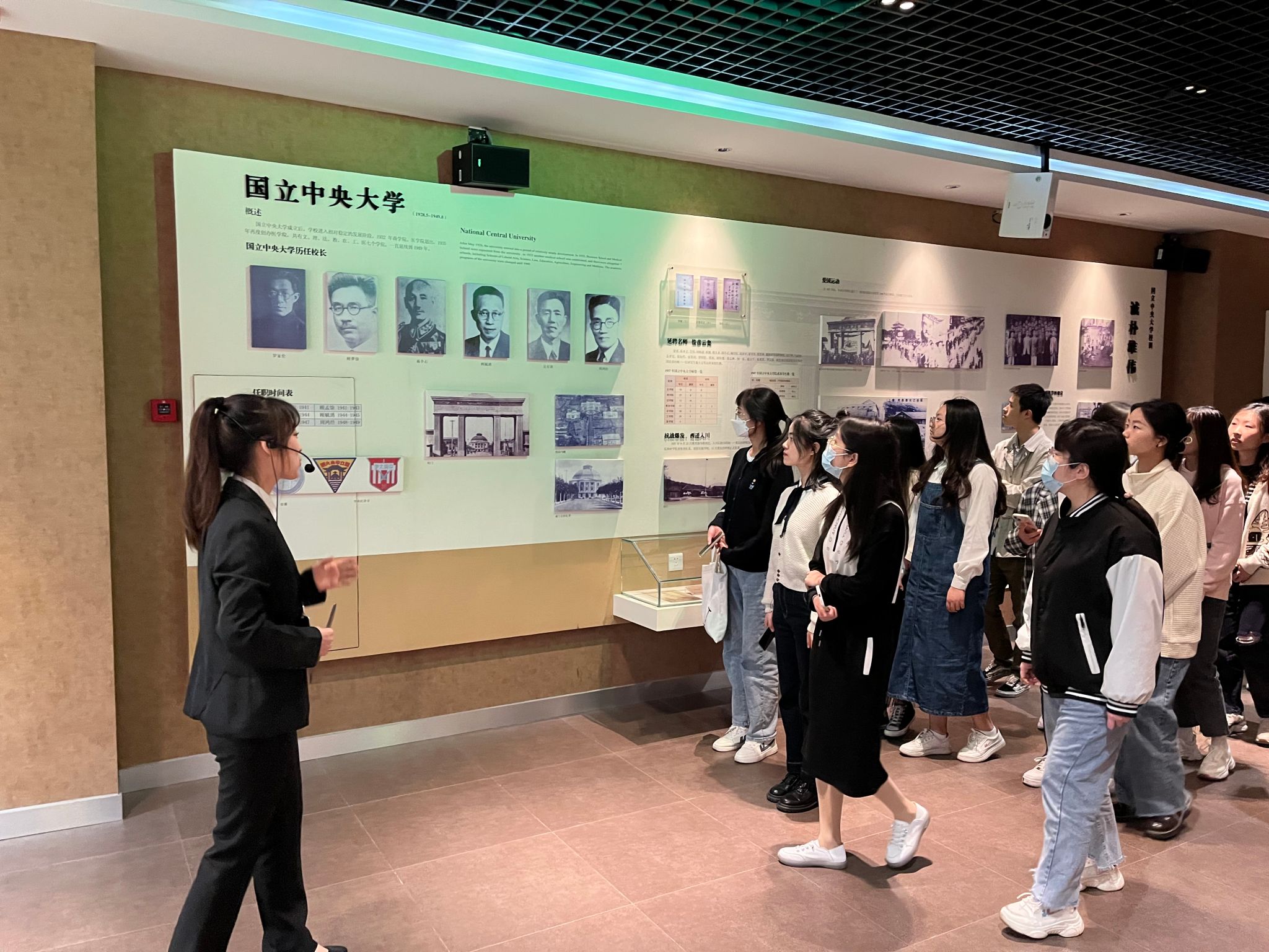 活动开始,同学们与解说员一起来到校史馆展厅内,了解杏色