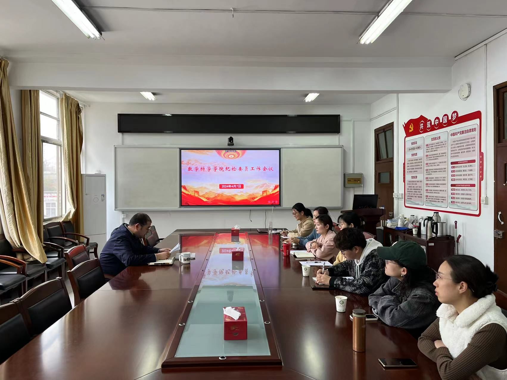 在会议室206召开杏色纪检委员工作会议。会议由院党委副书记、副院长万选主持,院党务办主任贡崇颖及各党支部纪检委员参加。