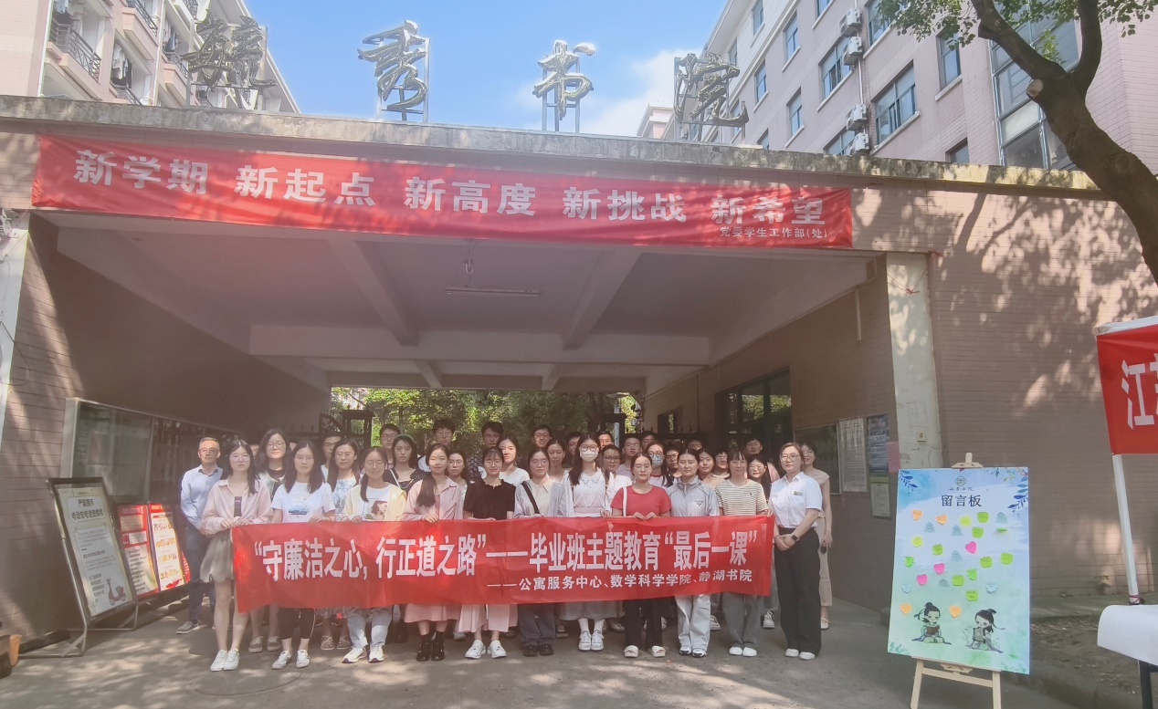 联合静湖书院、公寓服务中心在公寓B区开展“守廉洁之心,行正道之路”毕业班廉洁教育主题活动。杏色