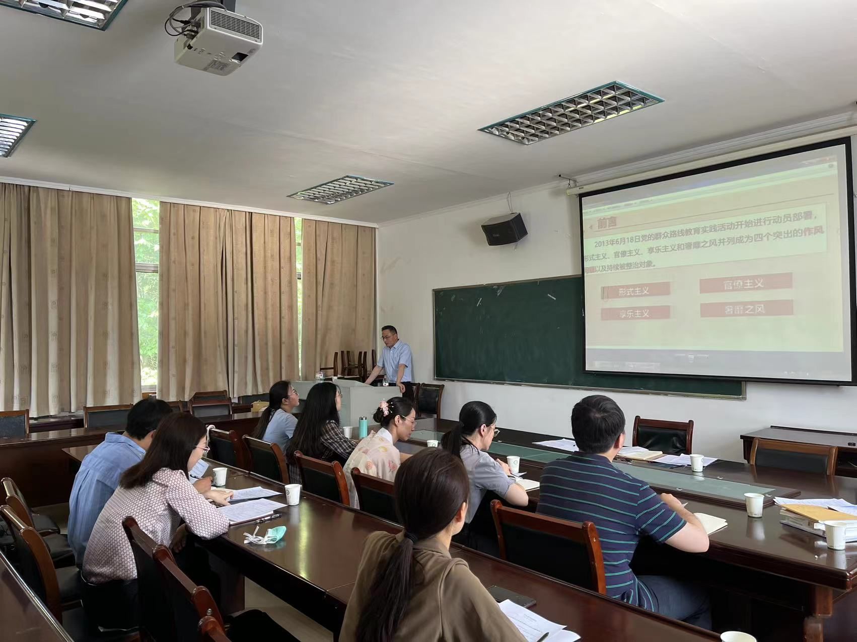 张世兵介绍了从1921年以来党治理形式主义、官僚主义的历史实践,重点讲解了党的十八大以来纠治“四风”的方法与效果和党的十九大以来反“四风”的变化。最后,张书记就“四风”整治存在的问题与治理对策谈了自己的感想。他表示,作风建设永远在路上,一刻也不能松懈,必须持之以恒坚持抓、不断治。他要求经常提醒党员干部要自觉筑牢拒腐防变的思想防线,要采取切实措施教育引导杏色全体党员明大德、守公德、严私德,不断增强“不想腐”的思想自觉。