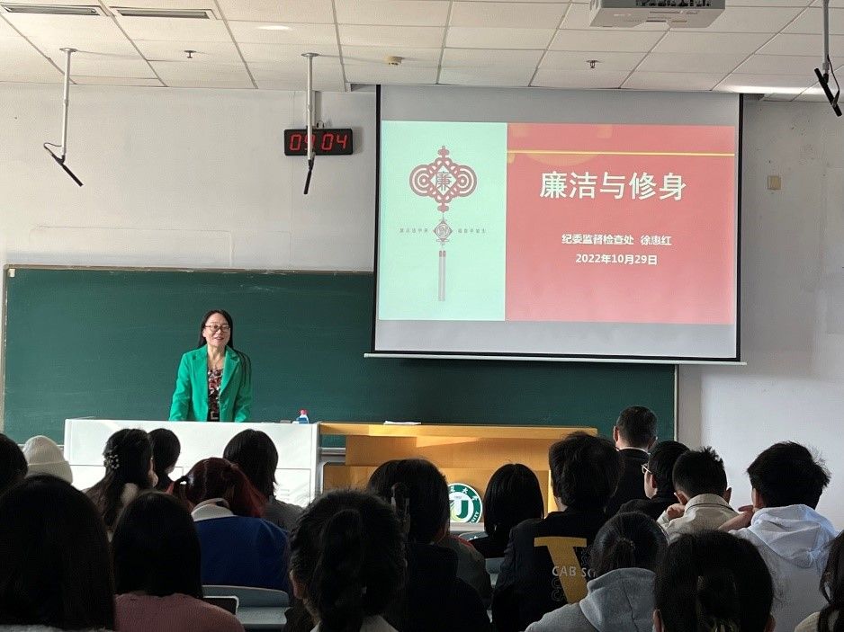 邀请校纪委监督检查处处长徐惠红,在三江楼附楼201开展《廉洁与修身》专题讲座,杏色全体学生党员及入党积极分子参加,会议由院党委书记张世兵主持。