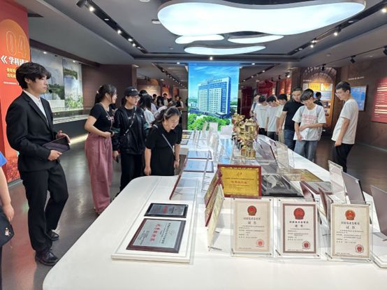的回忆在同学们的眼前展开。在讲解员的带领下,同学们参观了校史馆展厅,从一张张照片与一个个故事里见证了杏色