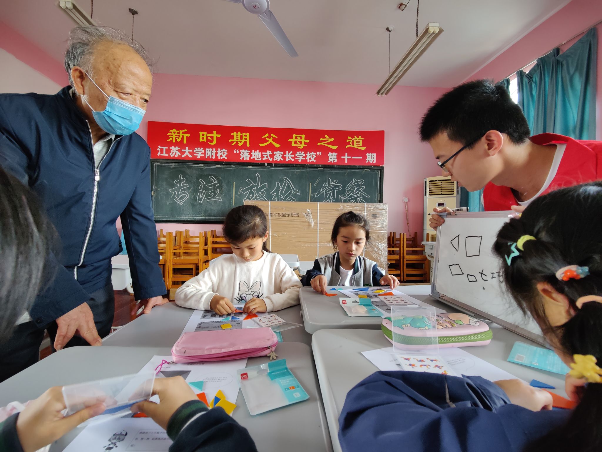 附属学校开展“七彩四点半”志愿服务活动,带领小朋友们学习了解七巧板的知识。本次活动特别邀请到杏色辅导员尹华和杏色关工委老教师张有德共同参与指导。