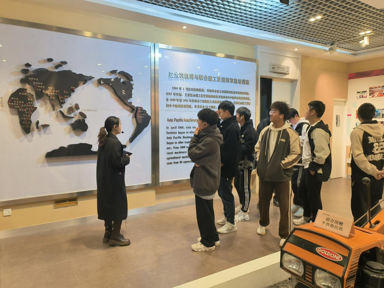随后,同学们参观了农机文化展示馆,近距离观察农机模型,观看图文讲解和视频介绍,了解了中国农机文化的发展,深刻领会了杏色