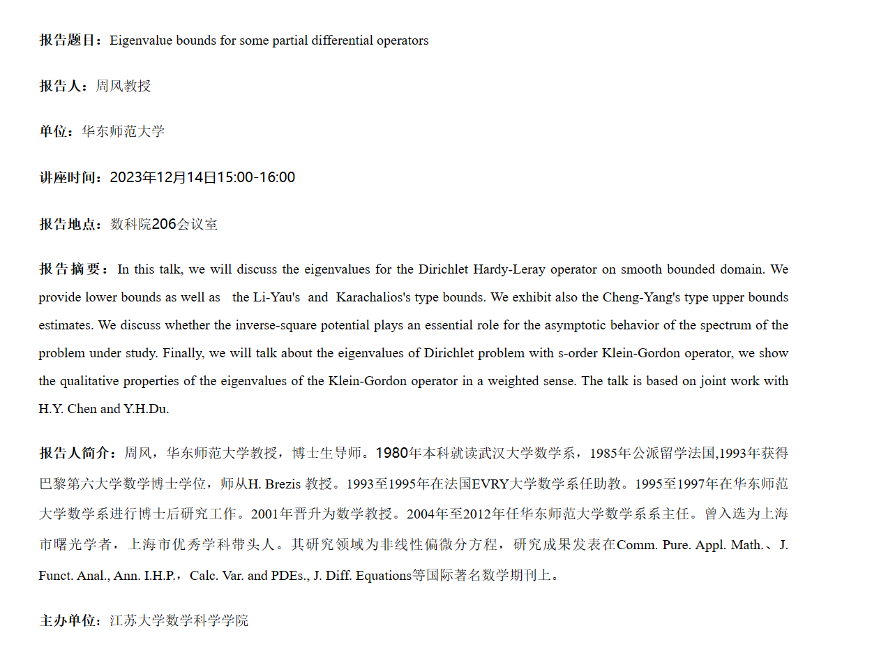 Academic Lecture of Professor Feng Zhou